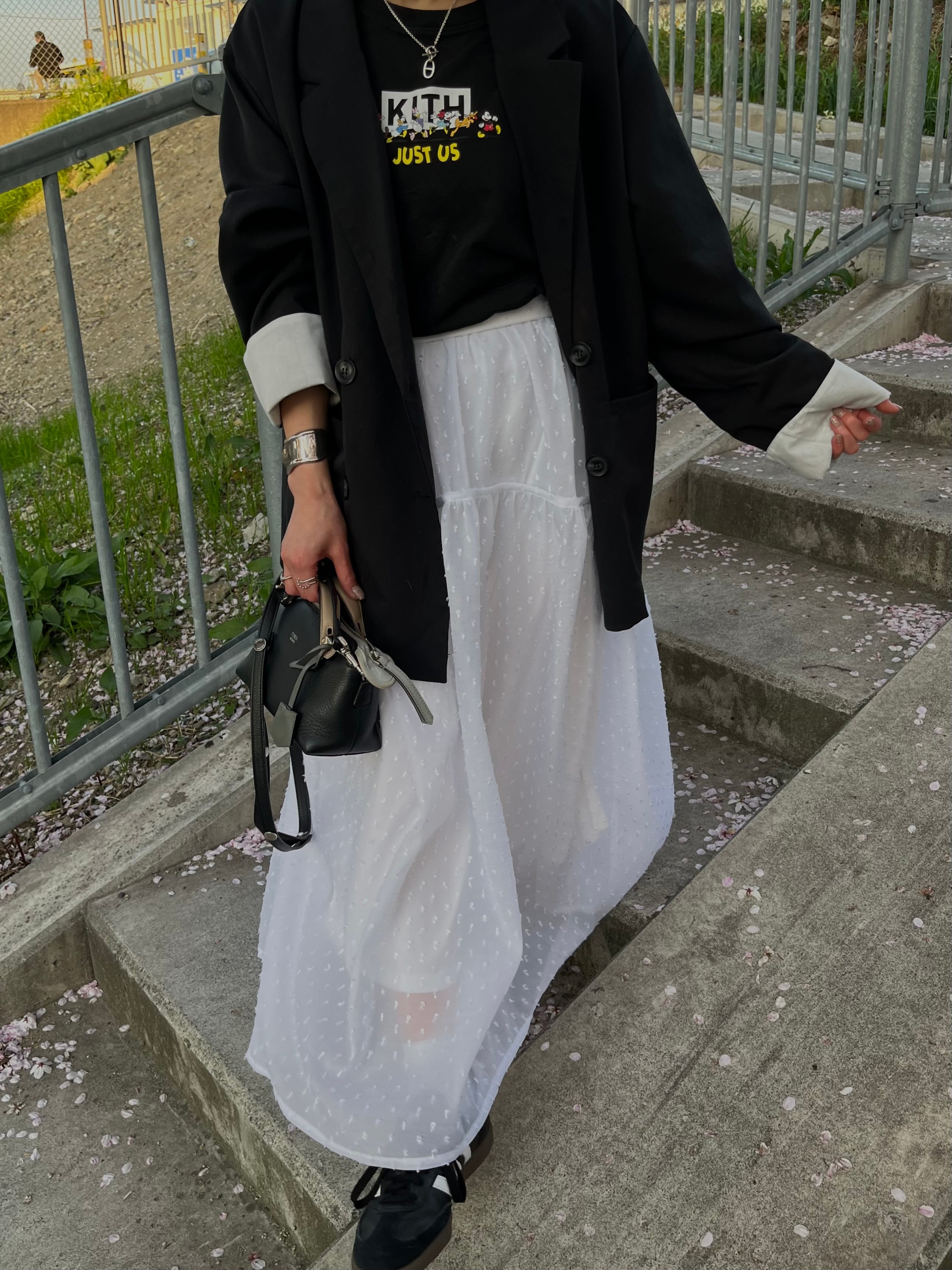 ジャケットなどカッチリとしたアイテムを合わせても素敵です。