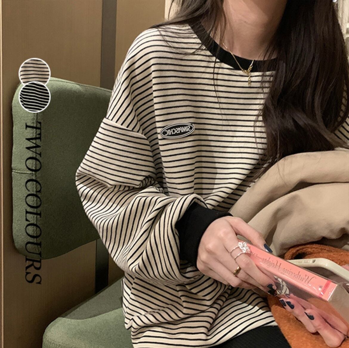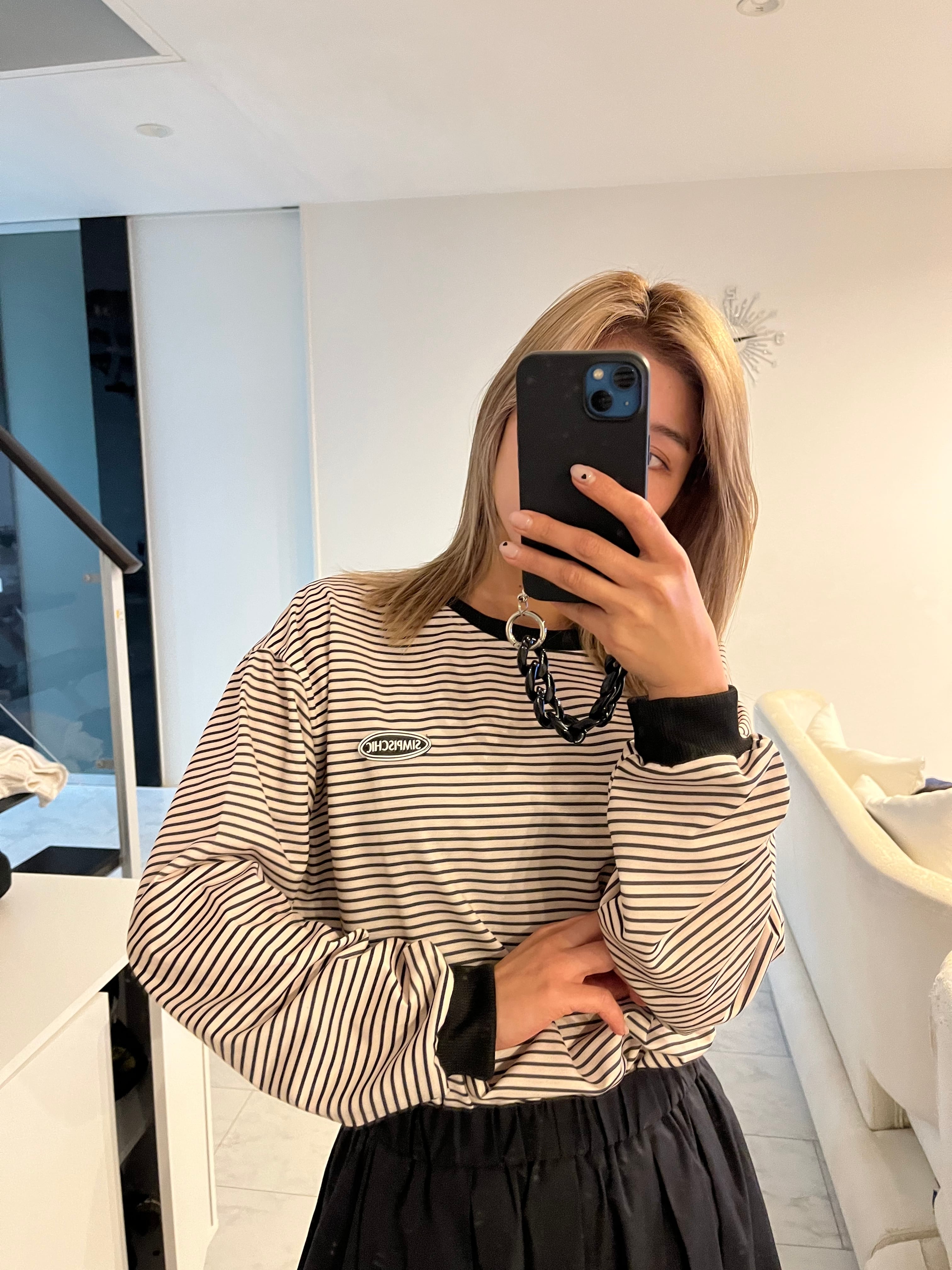 定番ボーダーロンTにアクセントの