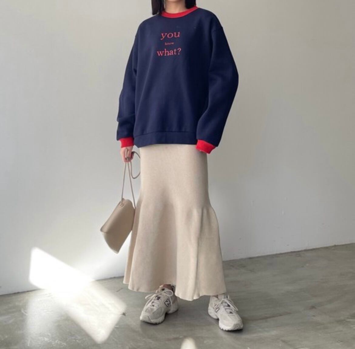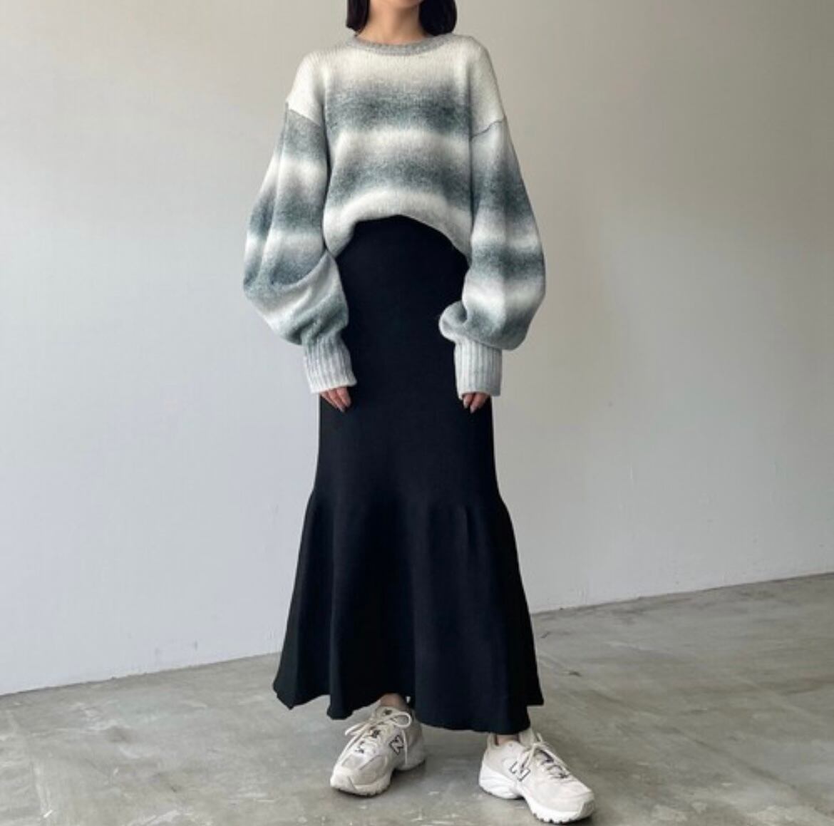 スッキリとしたマーメイドラインが美しいニットスカート。