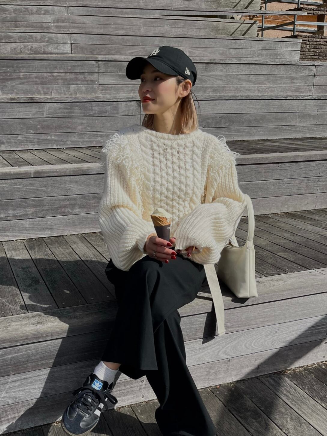 フリンジとケーブルが可愛い、今季イチオシknit♪