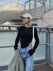 ボディースーツながらも、着こなししやすいデザインのため、コーデに取り入れていただきやすいです。